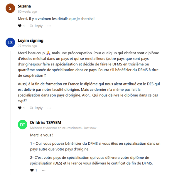 Un médecin qui termine son DFMS peut directement continuer en DFMSA s’il est reconnu spécialiste dans son pays.
